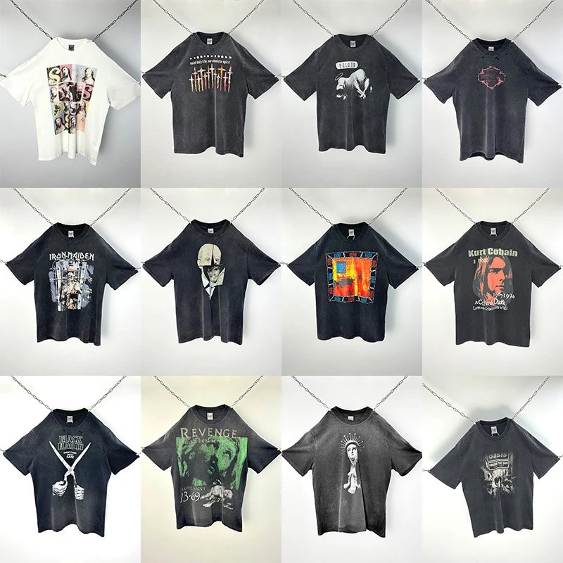 Washed short-sleeved T-shirt for men and women high street rock half-sleeve